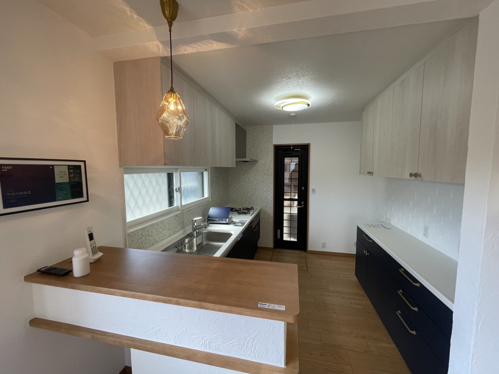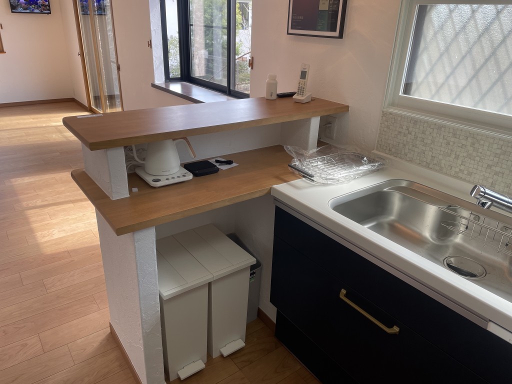 キッチン横のカウンターはご主人様こだわりの2段の造作カウンターです![]()