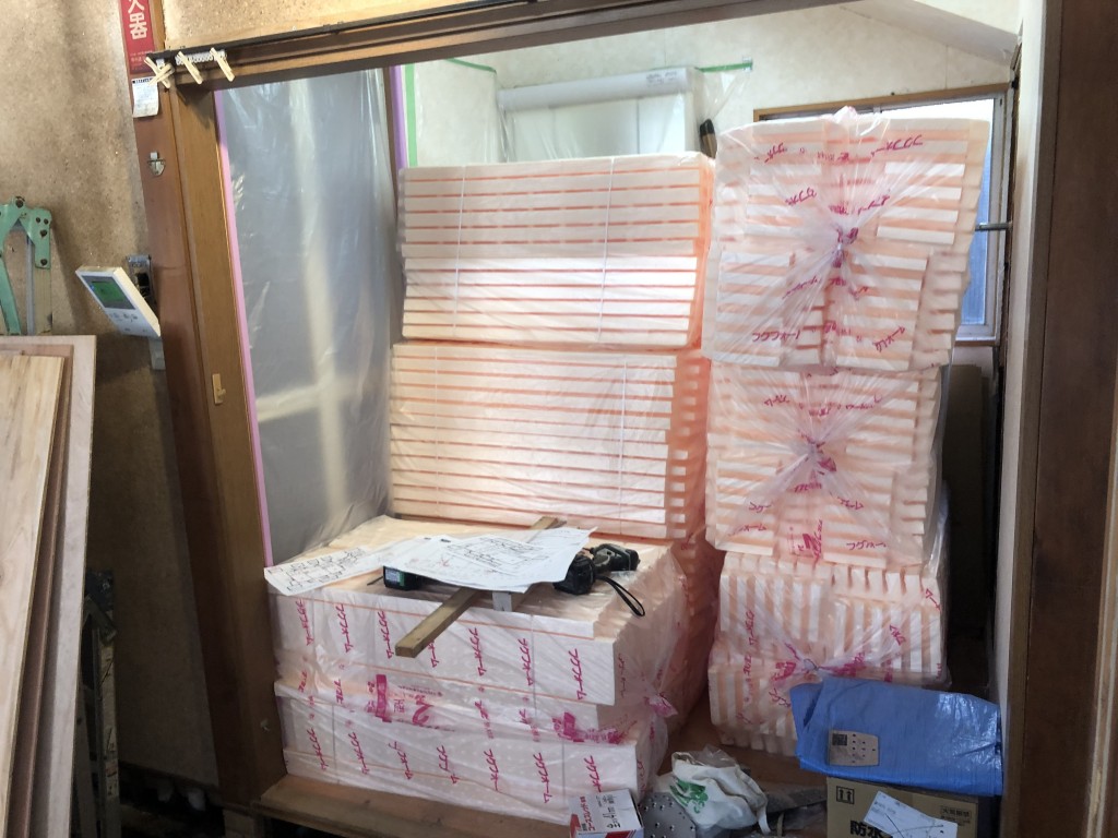 現場には、床下に入れる断熱材もたっぷり届きました![]()