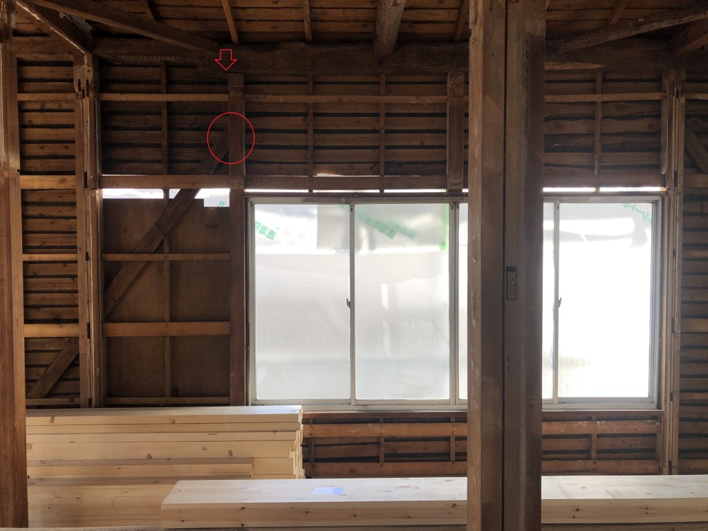 また筋交いが梁の高さまで届いていないので、あまり効いていない状態でした。