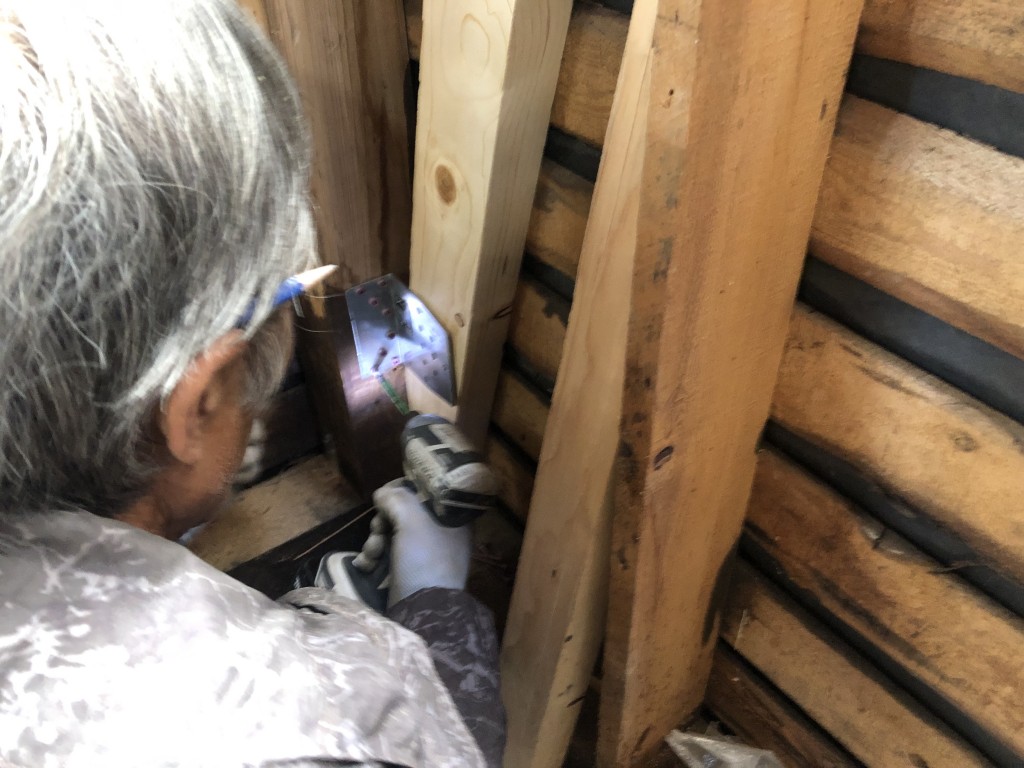 4.5cm×9cmの太い筋交いを入れ、専用の金物でしっかり固定しています。