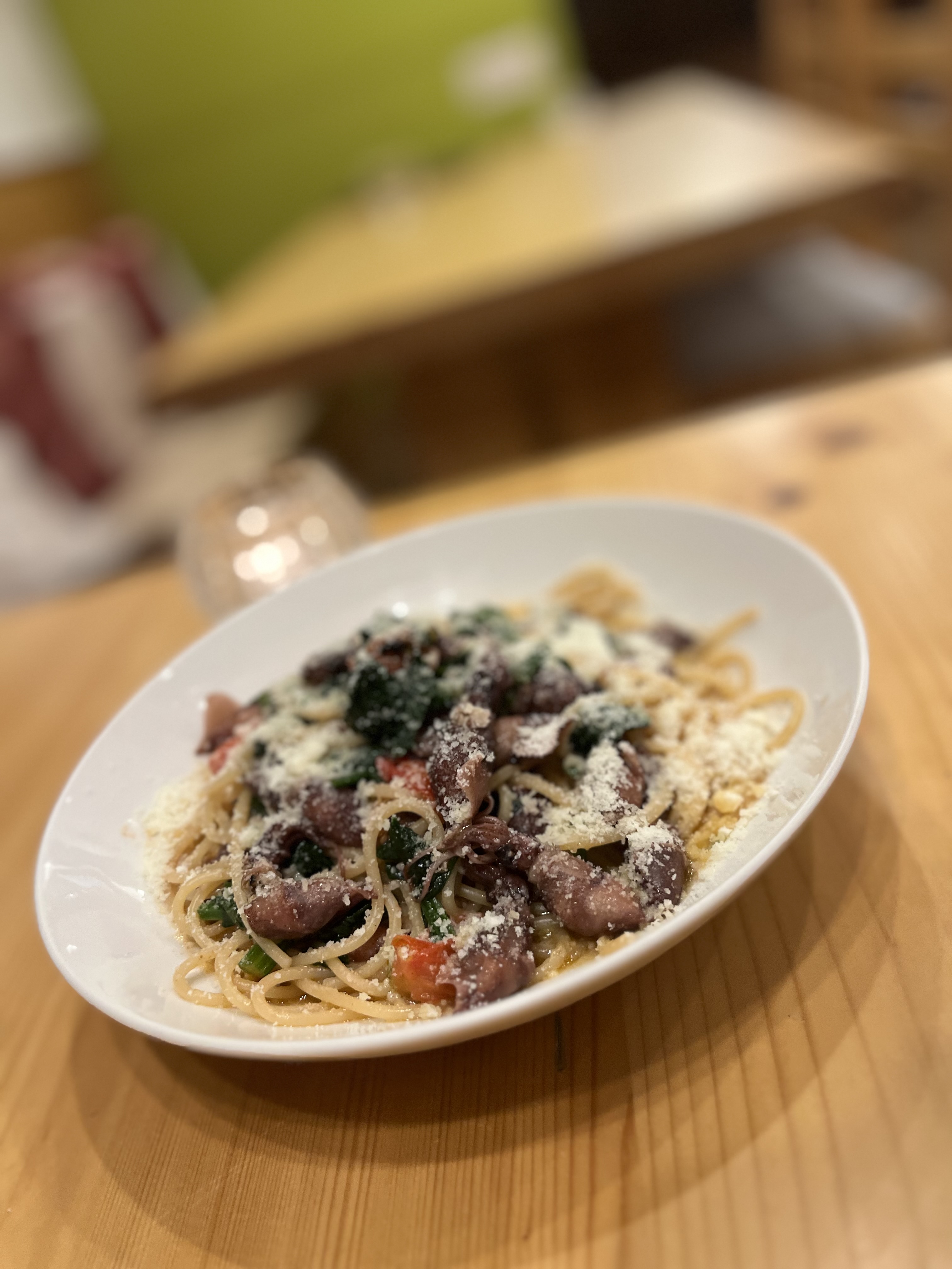 富山県産ホタルイカと八王子産ほうれん草のオイルパスタ