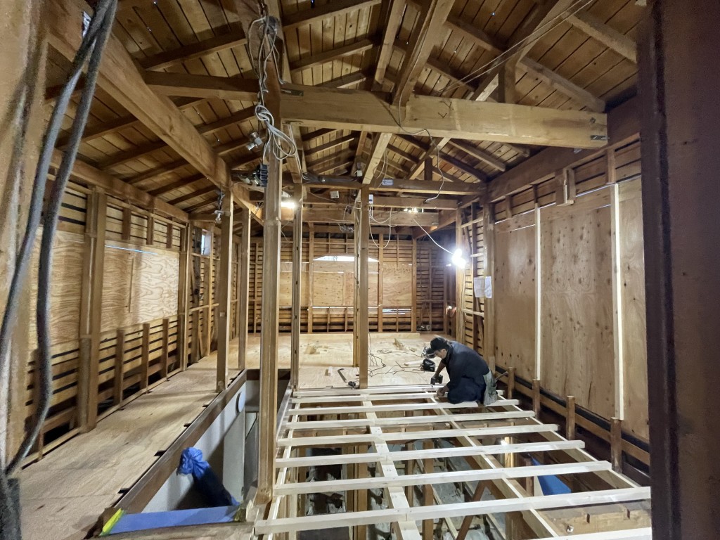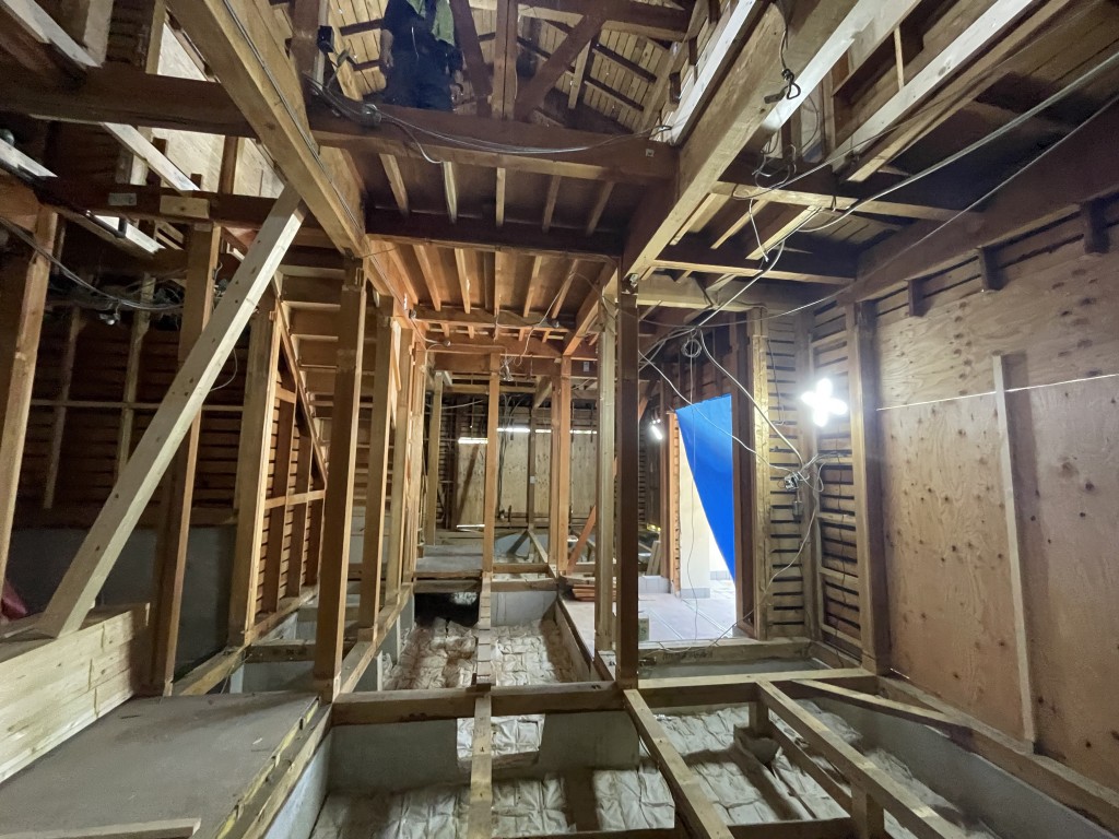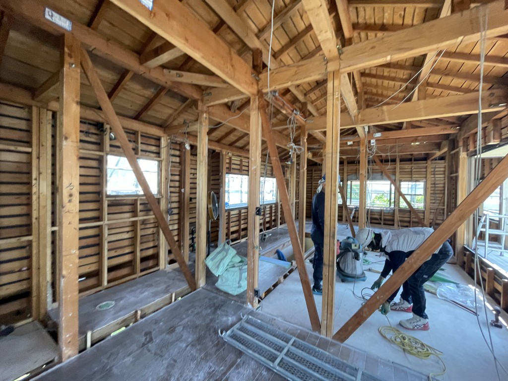 内部はスケルトンに解体し、耐震改修工事や断熱工事も合わせて行います。