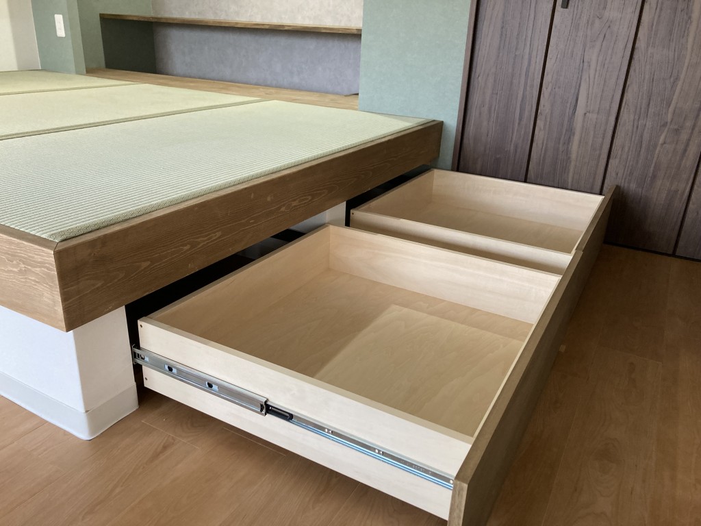 ちなみに小上がり下はエンラージお得意の造作収納![]()