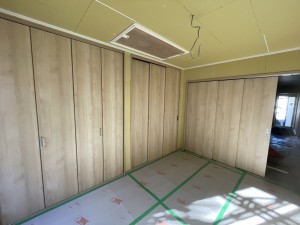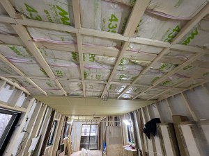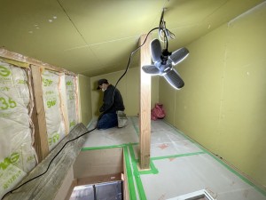 断熱材を入れたあとには石膏ボードを貼っていきます