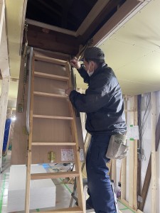 こちらの写真は小屋裏収納用の階段を取り付けている様子