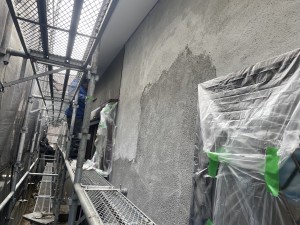 大工さんの作業は終わり、外部では左官屋さんによる「モルタル塗り作業」が始まりました