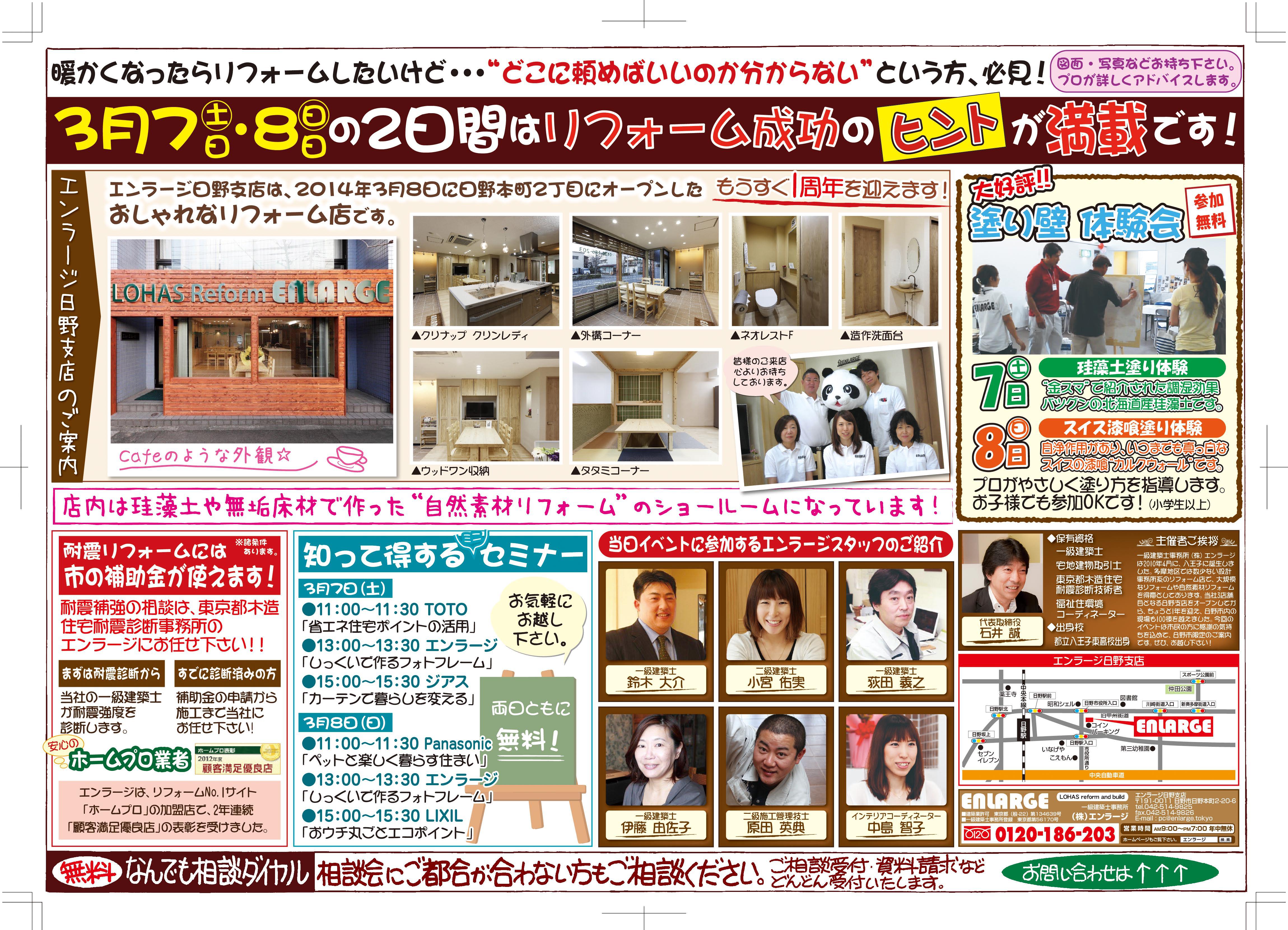 3/7(土)・8(日)の2日間はご家族そろって、エンラージ日野支店へ!!