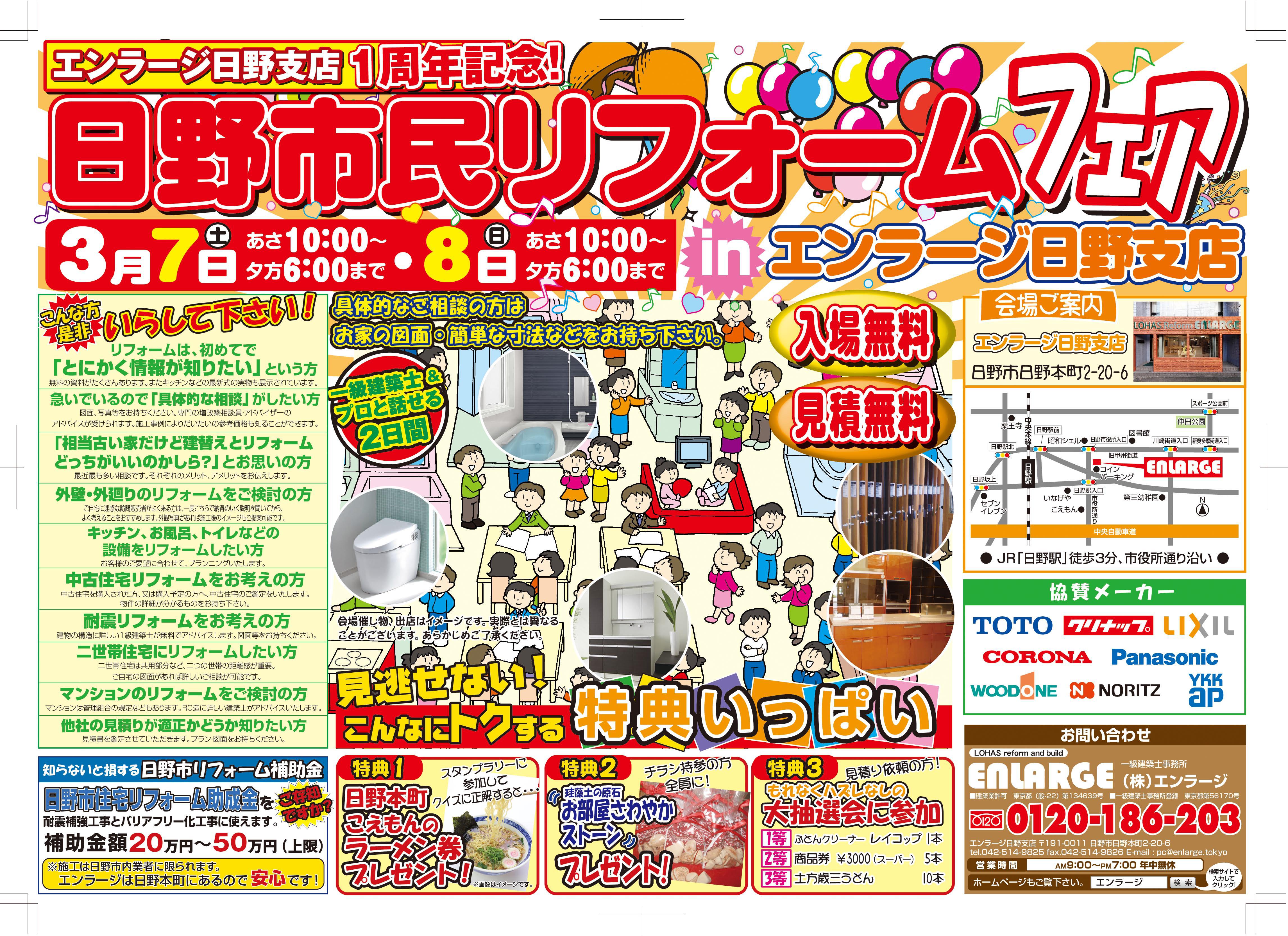 エンラージ日野支店オープン1周年記念 『リフォームフェア開催!』