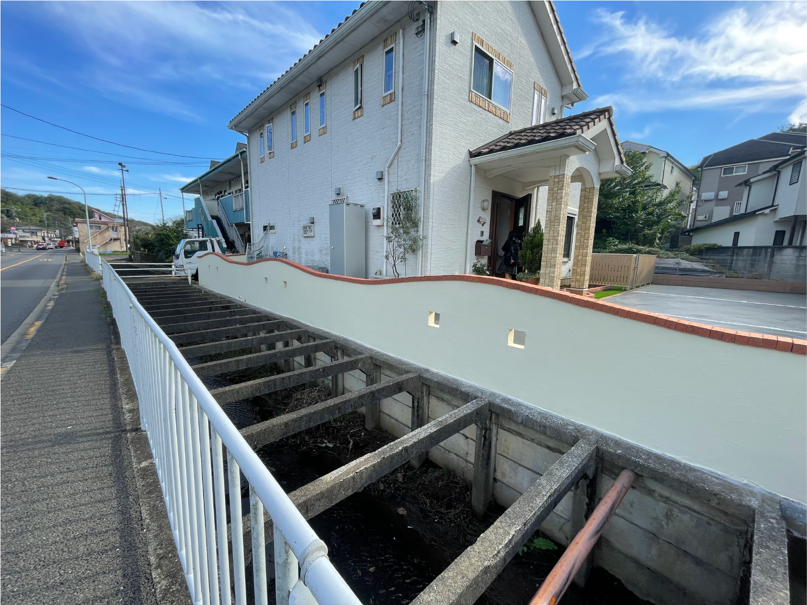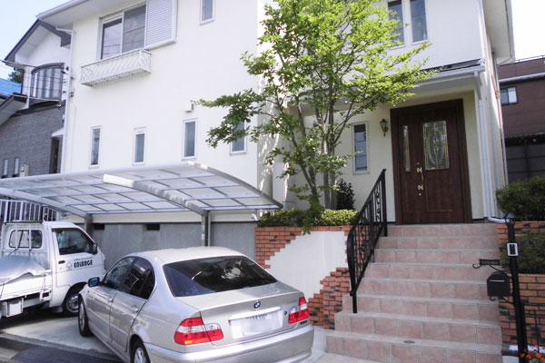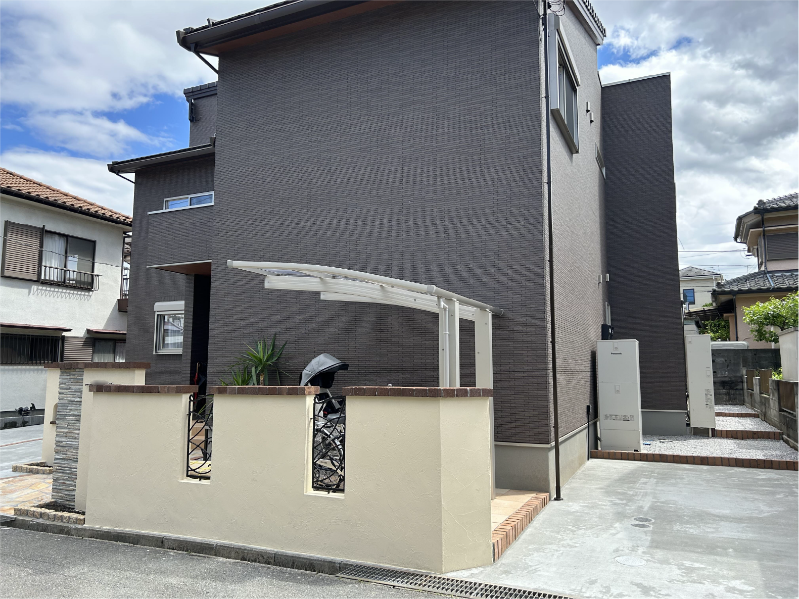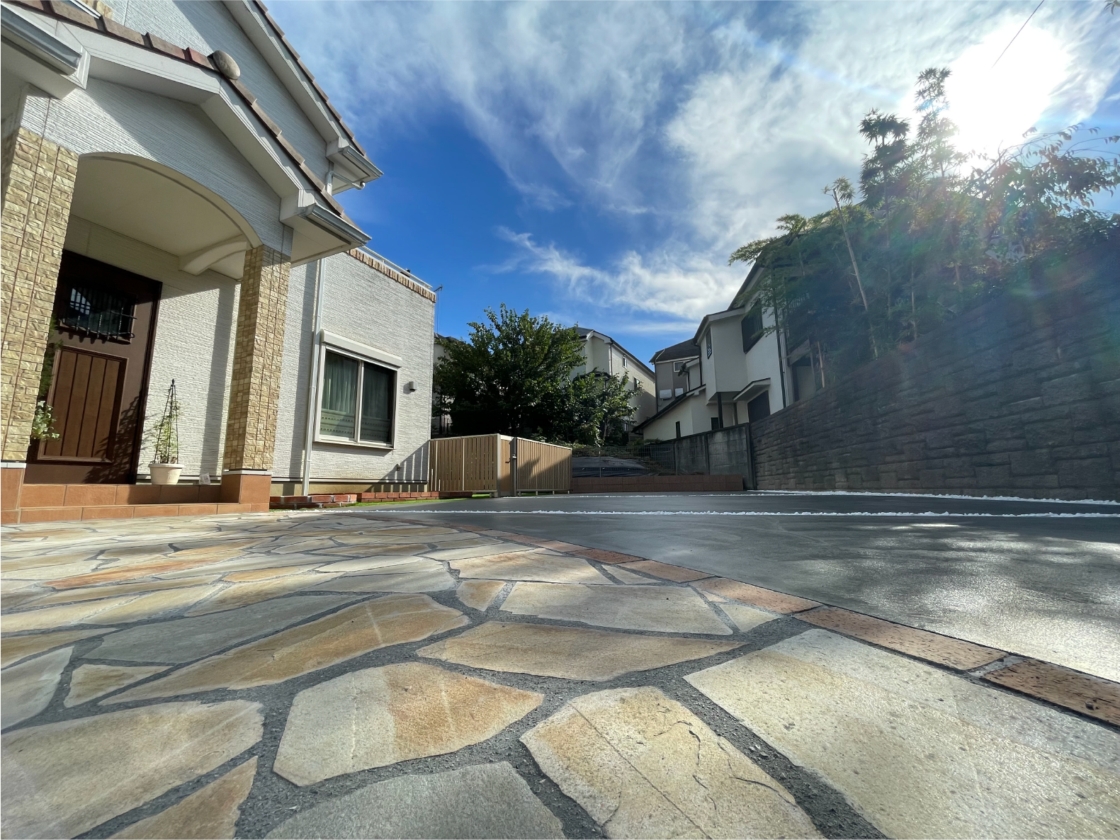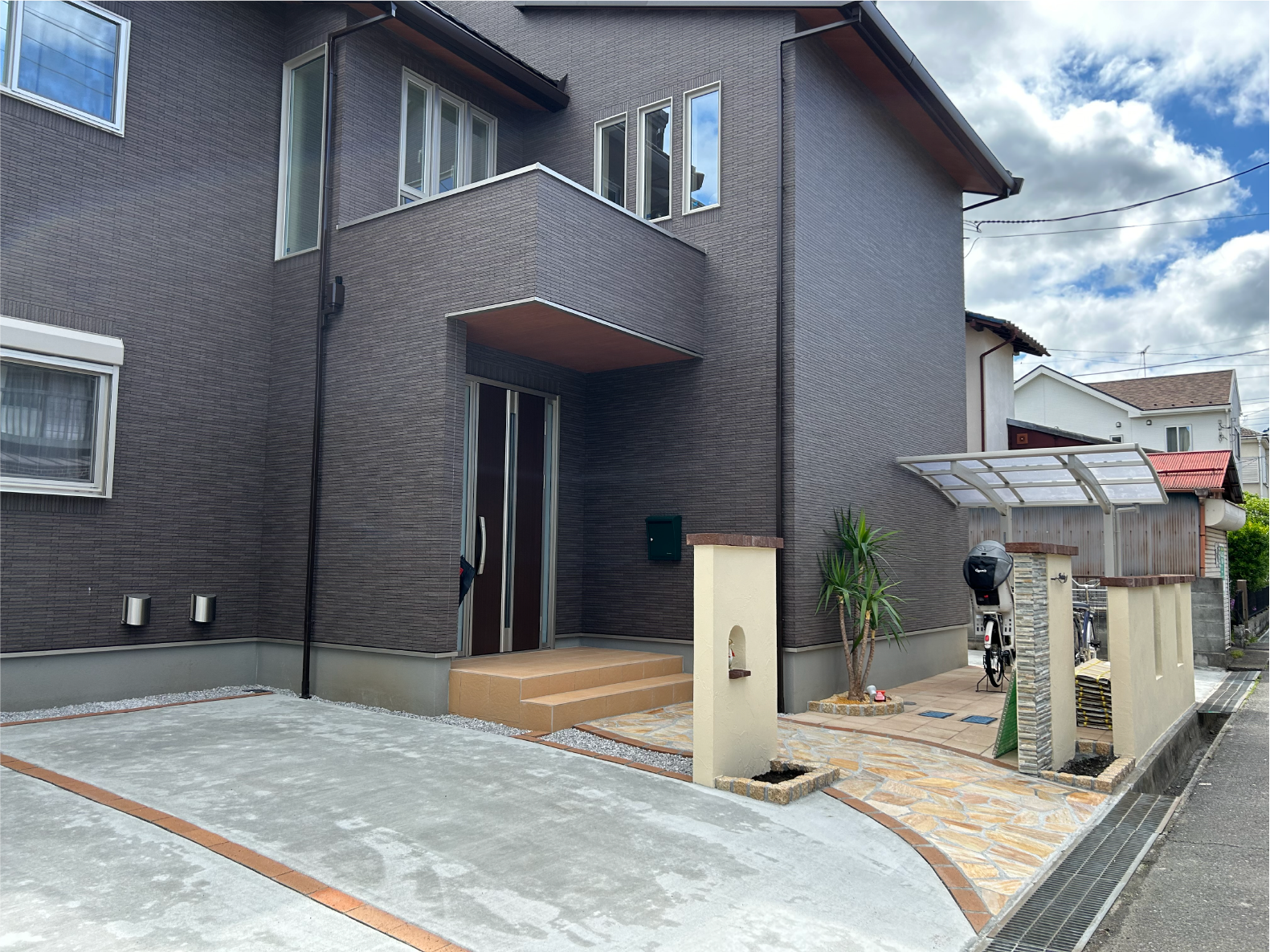 新築から約10年間手つかずだったお家のまわりを南欧風の建物の雰囲気に合わせて大規模にリニューアル。レンガと石張りを取り入れた広いカースペースやウェーブに加工した道路面の塀は、南欧のリゾート地のような素敵な仕上がりです。塗り壁材には「ディバネート」という、汚れに強く耐久性の高い素材を採用しているので時間が経っても美しさが続きます。シンボルツリーや花壇とウッドデッキも新設し、家庭菜園を楽しんだりお子さまやワンちゃんが楽しく過ごせる高級仕様のエクステリアが完成しました。