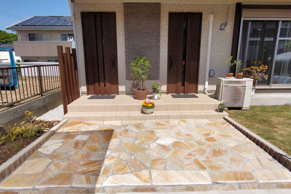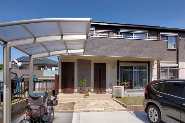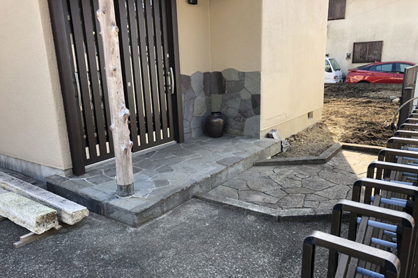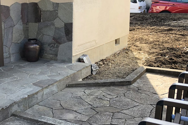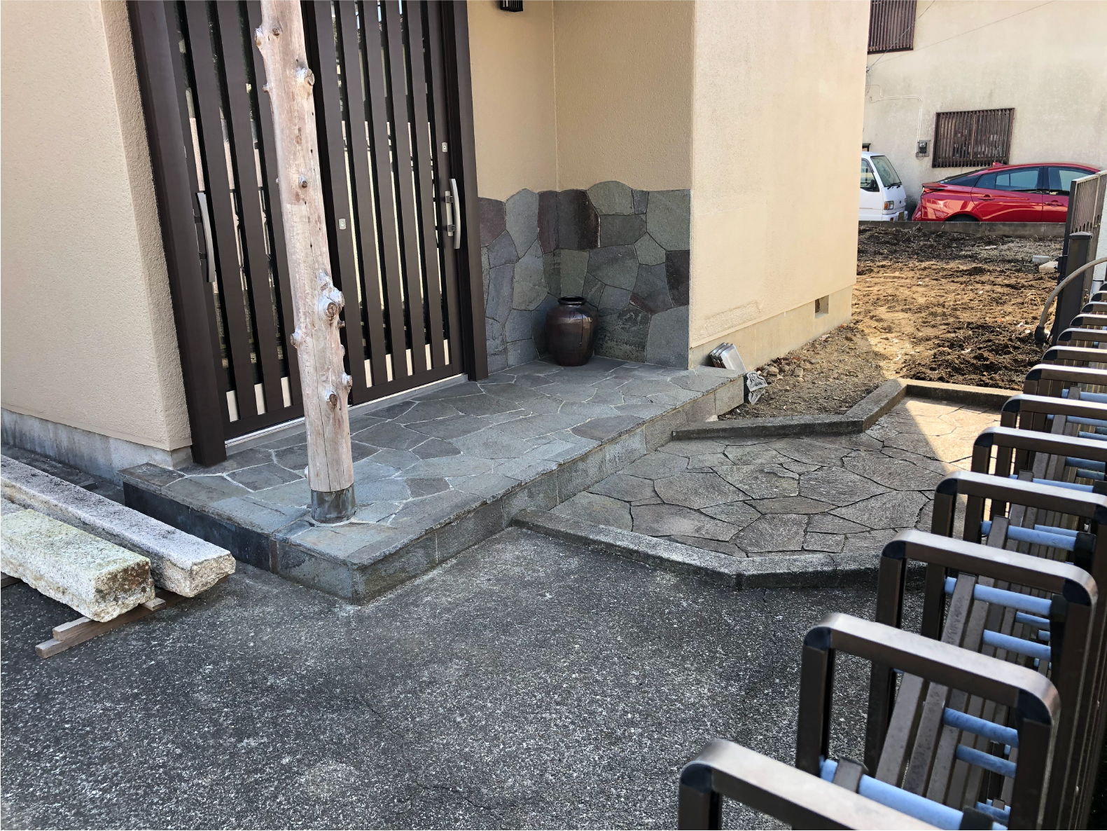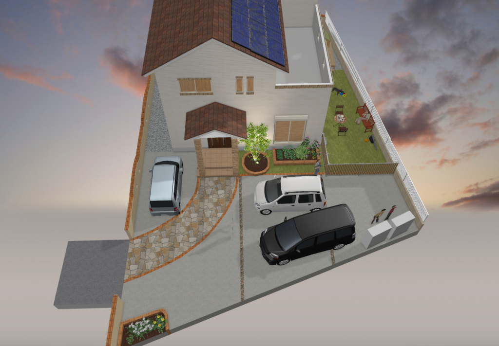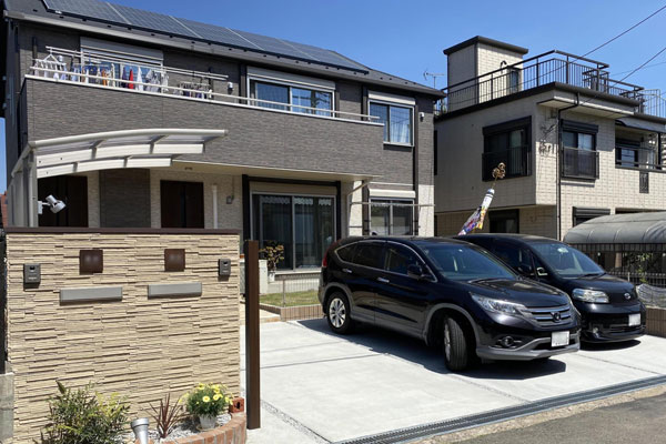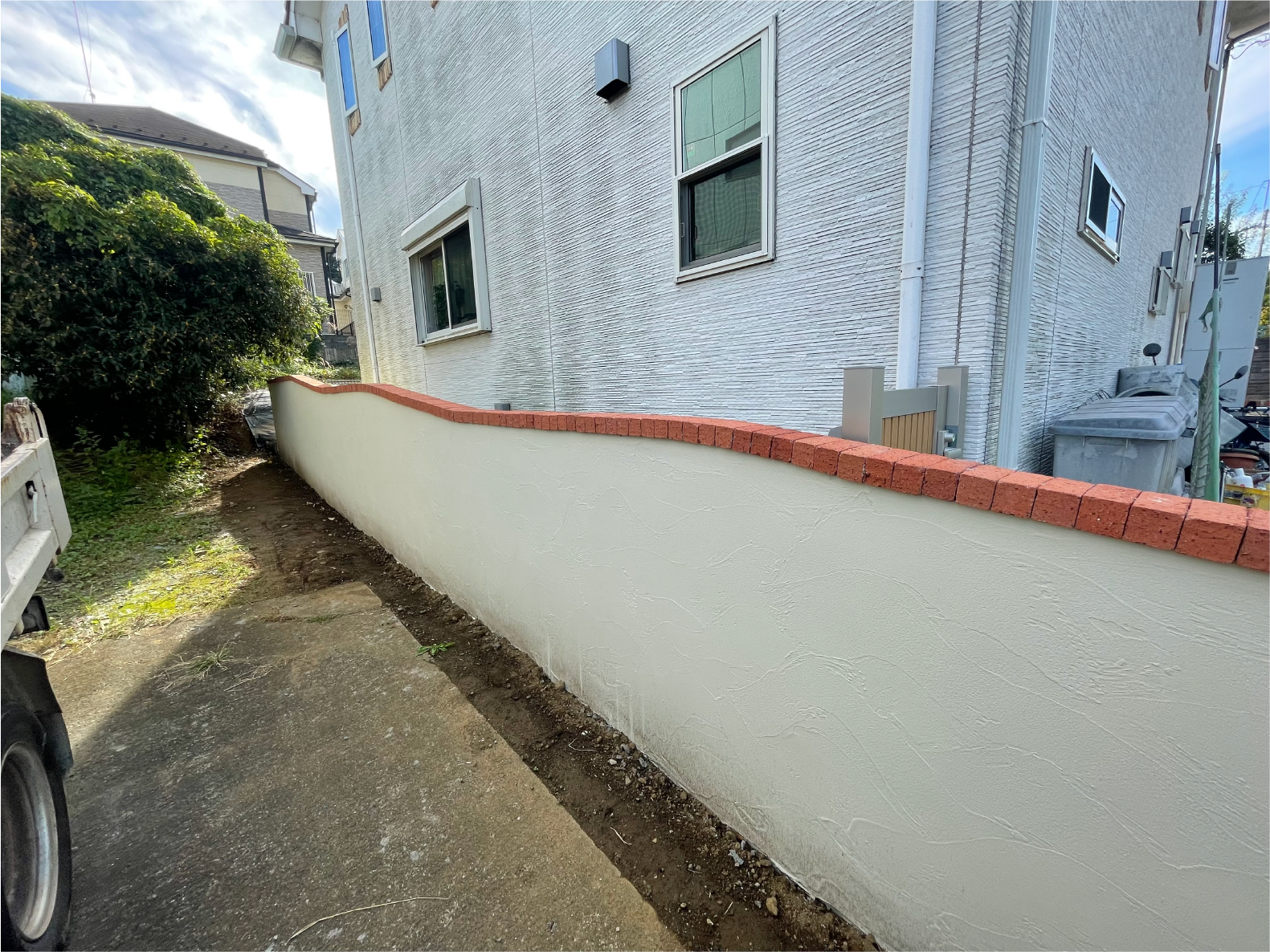 新築から約10年間手つかずだったお家のまわりを南欧風の建物の雰囲気に合わせて大規模にリニューアル。レンガと石張りを取り入れた広いカースペースやウェーブに加工した道路面の塀は、南欧のリゾート地のような素敵な仕上がりです。塗り壁材には「ディバネート」という、汚れに強く耐久性の高い素材を採用しているので時間が経っても美しさが続きます。シンボルツリーや花壇とウッドデッキも新設し、家庭菜園を楽しんだりお子さまやワンちゃんが楽しく過ごせる高級仕様のエクステリアが完成しました。