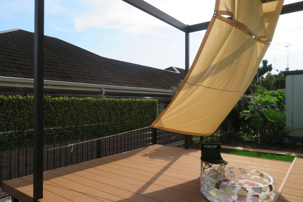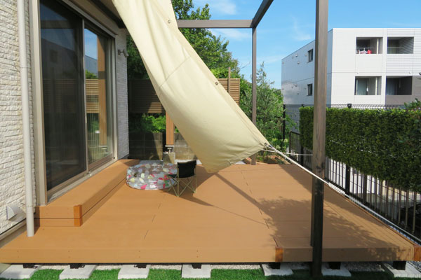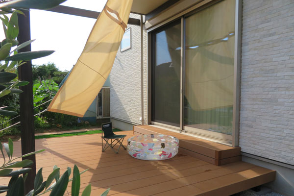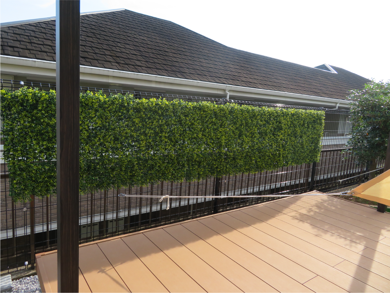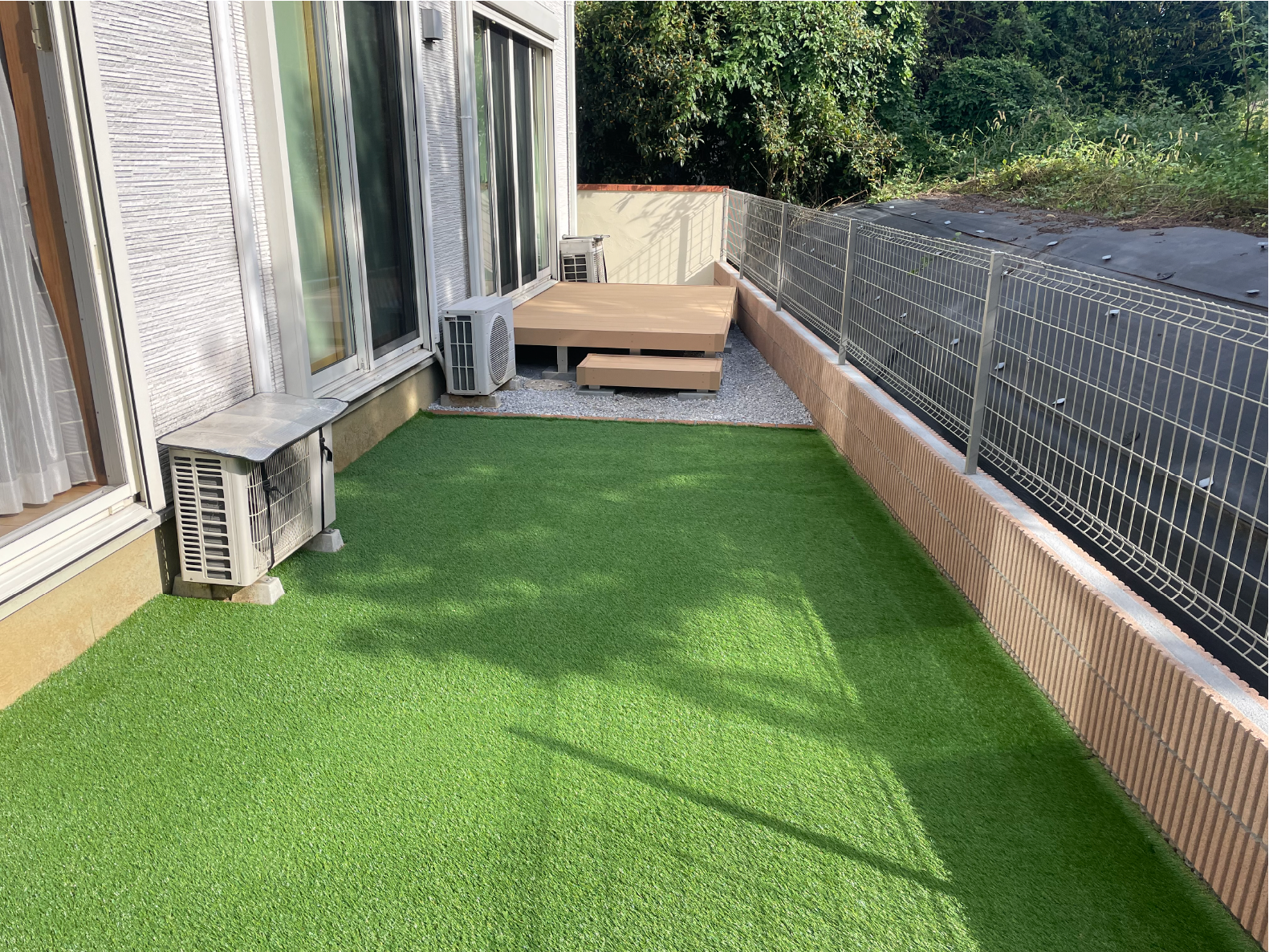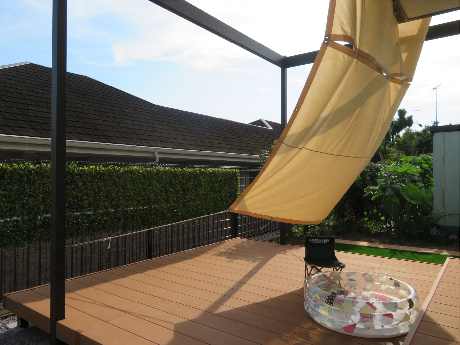 新築時から土のままになっていたお庭を家族みんなで楽しめるようにリニューアル。長年の夢だったウッドデッキとパーゴラを新設し、プールやバーベキューができる自慢のお庭が完成。ウッドデッキはメンテナンスの楽さで人気の人工木デッキを採用し、草木も丁寧に撤去して防草シートを敷いてから白砕石を撒いているのでメンテナンスの負担も軽減。転倒防止用のフェンスは目隠しとしても活躍するのでプライバシーも守られて安心です。施工後には「希望していた以上の素晴らしいお庭になりました!」とお喜びの声をいただきました。