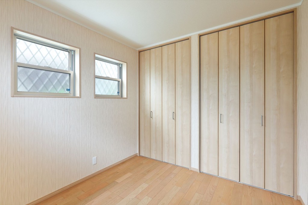 ビルトインの駐車スペースを部屋にして、ご夫婦の寝室に。内装には落ち着きと温かみのある色をお選びいただきました。クローゼットはお一人ずつ広々と使っていただけます!