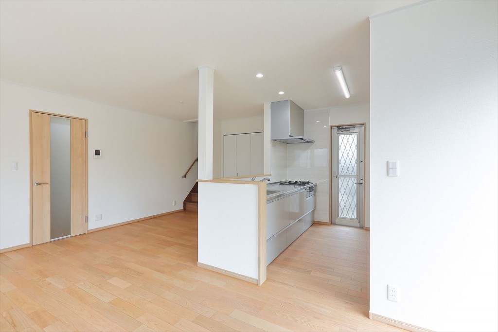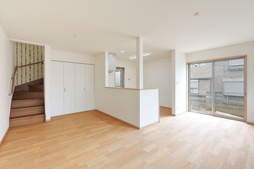 間取り変更に伴って階段位置の見直しも行いました。 LDKを通って階段にアクセスするリビングイン階段変更して、家族がコミュニケーションを取りやすい間取りに。 とても仲の良いK様ご家族にぴったりです。
