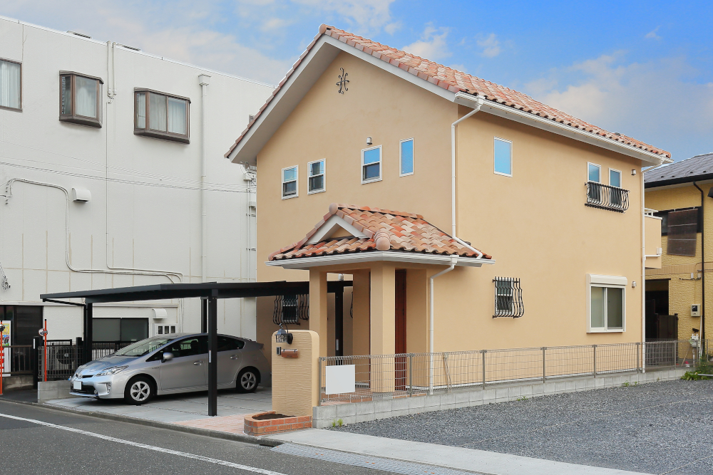 南欧スタイルをご希望されていたI様。屋根はヨーロピアン瓦を混ぜ葺きにして、ほどよくアクセントを効かせました。外壁は「ディバネート」という塗り壁で仕上げました。ディバネートは“呼吸する壁”とも言われており建物にとってやさしい素材です。見た目は柔らかそうな風合いですが、汚れにくくクラック(ひび)も入りづらいのが特徴です。きれいな状態が長年続きます。