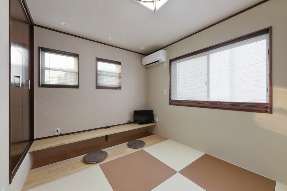 カラ―畳を市松に敷き詰めた和モダンな和室