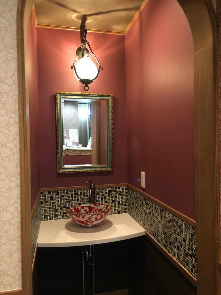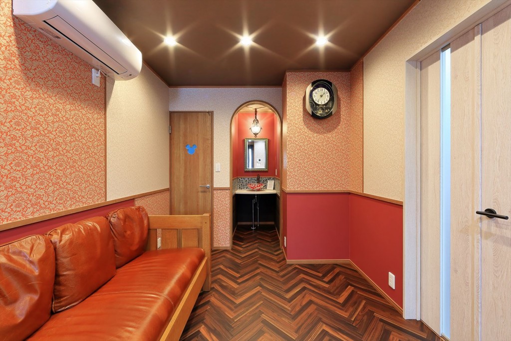 患者様用の洗面台は既製品ではなく、オリジナルの造作洗面台をご提案しました。歯医者さんとは思えない、まるでペンションのような洗面コーナーになりました。