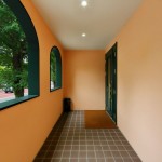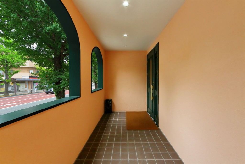 以前は急な階段があったエントランスも、減築してアプローチを長くすることにより、緩やかな階段に作り替えました。