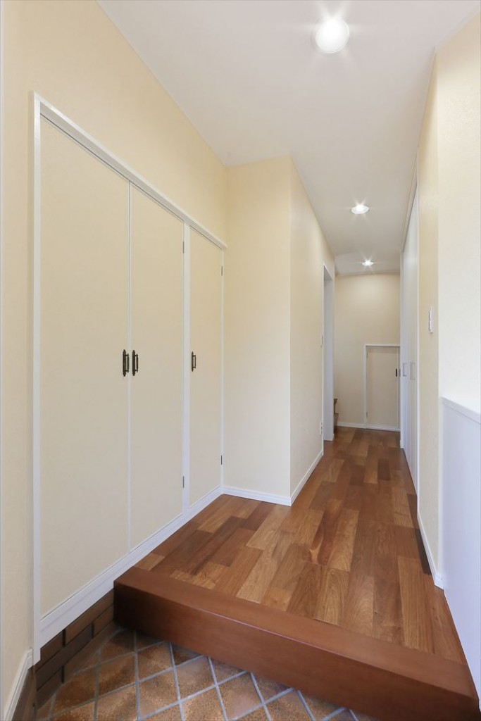 アメリカ人の奥様のご希望は“洋風”にしたい!という事でしたので、壁は白い壁紙ではなく、淡い黄色の壁紙にしたことで輸入住宅のような雰囲気になりました。高台で陽当りの良い物件なので、より明るく素敵なお家になったと思います。建築関係の現場監督をされているご主人様は、構造体の補強にご納得のご様子で、ご夫婦とも大満足のお引渡しとなりました。もうすぐ産まれるお子様と3人で、これからもお幸せにお過ごしください。 プランナー伊藤