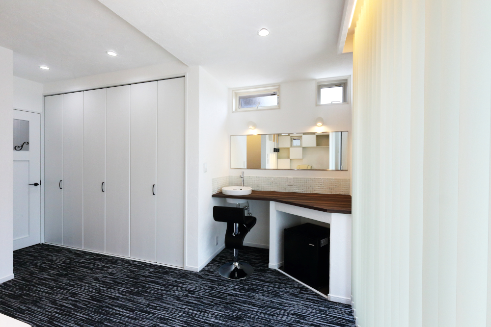 K様は以前より当社を良くご存じのお客様でした。娘様の成長を機に間取りをリニューアルし、耐震補強で建物の強度を高めつつ、1階の全面をリフォームしました。長年抱いていたK様のこだわりを形にしてゆき、ホテルのようなスタイリッシュな空間へ生まれ変わりました。