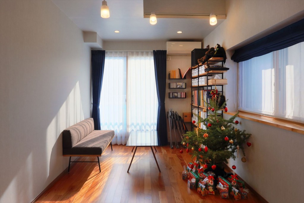 吹き抜けだった部分まで床を張りのばし、リビングスペースを広くとりました。内装は、自然素材をふんだんに使用して、まるでモデルルームのような仕上がりです。