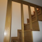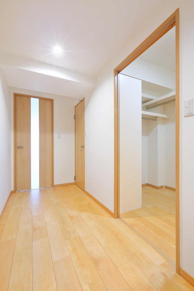 とてもセンスの良いK様のご提案で細かいデザインにもこだわりをプラス。地下室への階段手摺壁は圧迫感があるためオープンなアイアン手摺に変更し、玄関ホールの間口を広げたいとの事で、西側の洋室との間仕切りをずらし、約40cm廊下を広げました。