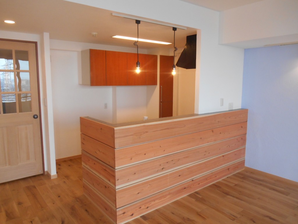 M様、当社に内装リフォームをお任せいただき、ありがとうございました。何度も打合せを重ねて、完成イメージを共有しながら理想を形にすることができました。M様と一緒に作り上げた傑作だと思います。ぜひ自然素材の風合いを楽しみながら暮らしてほしいです。