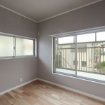 窓はペアガラスに全て交換しました。サッシ屋さんの提案で外壁の補修がいらないカバー工法を採用し、価格を抑えています。窓を新設した所は外壁をモルタルで補修して、現況と同じ色の塗装で仕上げています。