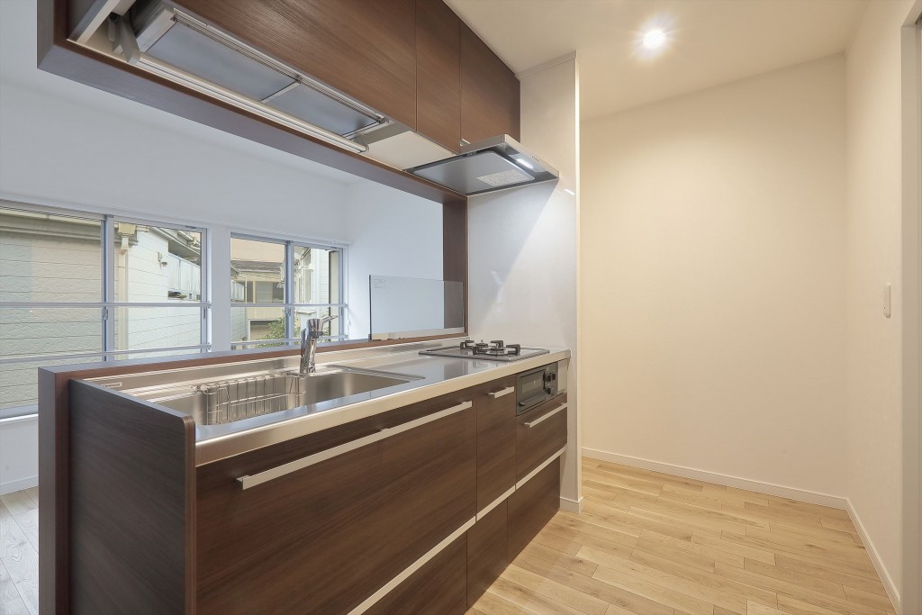 2階の2部屋を1つの住居に間取り変更しました。内部をスケルトン状態に解体してから、全面的にリノベーションしました。