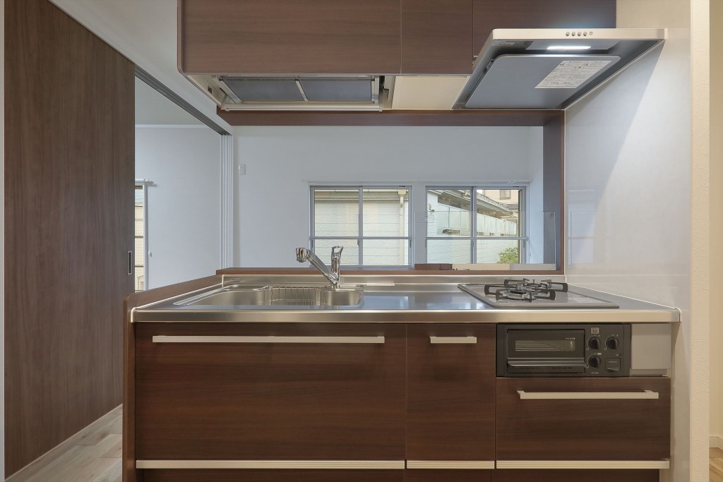 M様はホームプロを通じてお問合せ頂いたお客様です。お父様が所有するアパートを改装して、ご夫婦の新居としてリノベーションしたいというご希望でした。ワンルームの賃貸用アパートの2室を1室にするプランを気に入って頂き、さっそく工事をご依頼下さいました。それほど広くはない限られた空間を、いかに暮らしやすく改装するか。そこをお客様と共に考えて作り上げたお家です。LDKと和室の間仕切り戸は、天井までの特注サイズで作り、キッチンの吊り戸棚の高さ等、細部にわたって工夫しました。完成後は、実際の広さより空間の広がりを感じられるようにしています。奥様とご主人様の共通の趣味であるアニメキャラクターのフィギュアが映える、素敵な新居に生まれ変わりました。