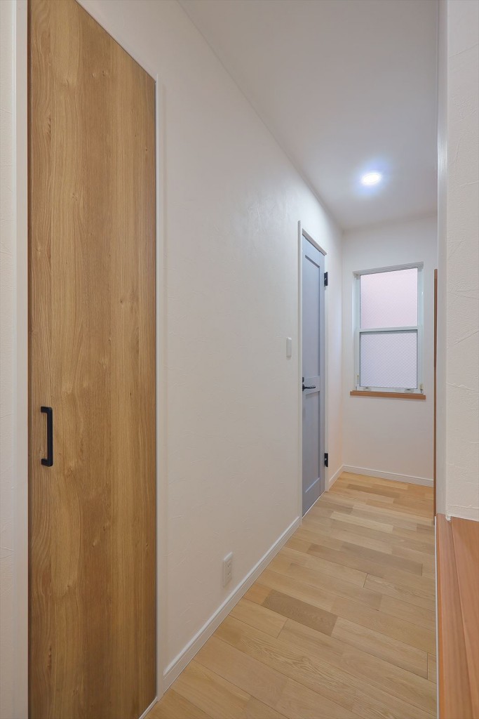 築16年の2×4 (ツーバイフォー)住宅の間取り変更を伴う1階フルリフォーム。和室を洋室に変更してLDKを広げたり、お風呂を1216から1616にサイズアップするなど、2×4(ツーバイフォー)では難しいとされる内容でしたが、壁量計算を行い構造を考慮しながらプランニングをさせていただきました。LDKの床には、奥様こだわりの、幅広タイプの無垢フローリング(ナラ材)を採用し、水まわり商品はすべてTOTOで統一するなど思い通りのリフォームができました。