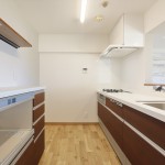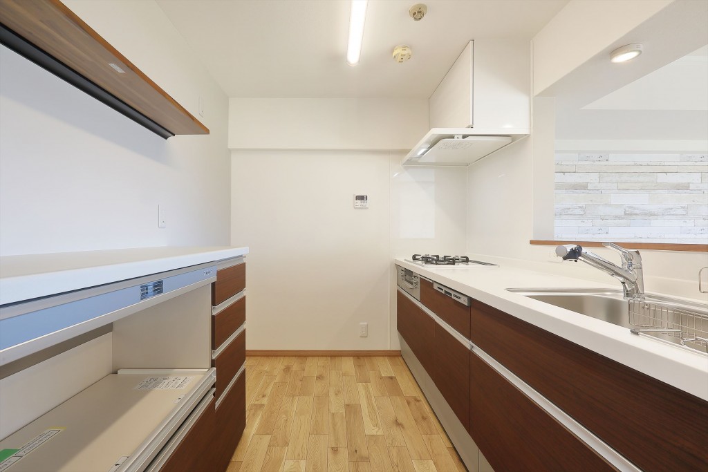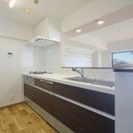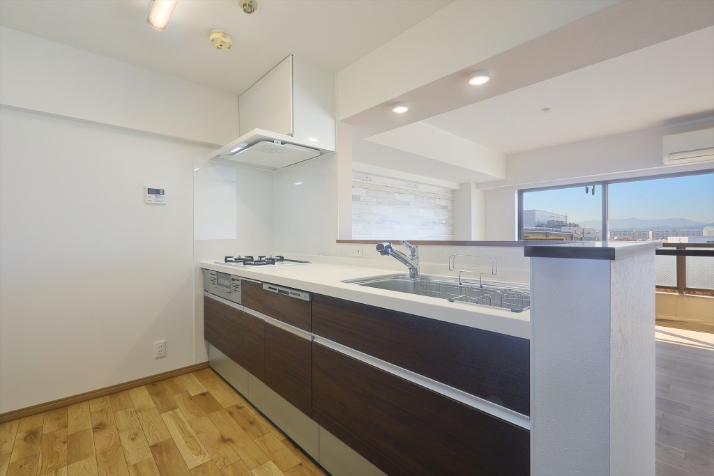 壁付だったキッチンは、対面キッチンへ変更。バルコニーに面した見晴らしの良さを活かし、リビングの開放感をキッチンに取り入れる事ができました。気持ちよく料理が出来て楽しくなりますね。