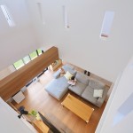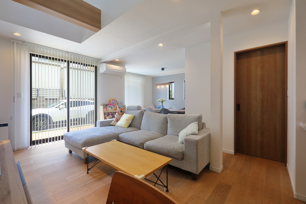 6帖の洋室をLDKと一体化し、開放感のある広々LDKを実現しました。また、リビングの天井を開口して、大きな吹き抜けを新設。既存の梁は化粧をして現しにしています。