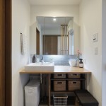 洗面台は造作し、床にはタイルを貼りました。テーマは「ホテルライク」です。
