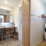 キッチンは対面式に変更して、西側にランドリースペースへの引き戸を設置しました。