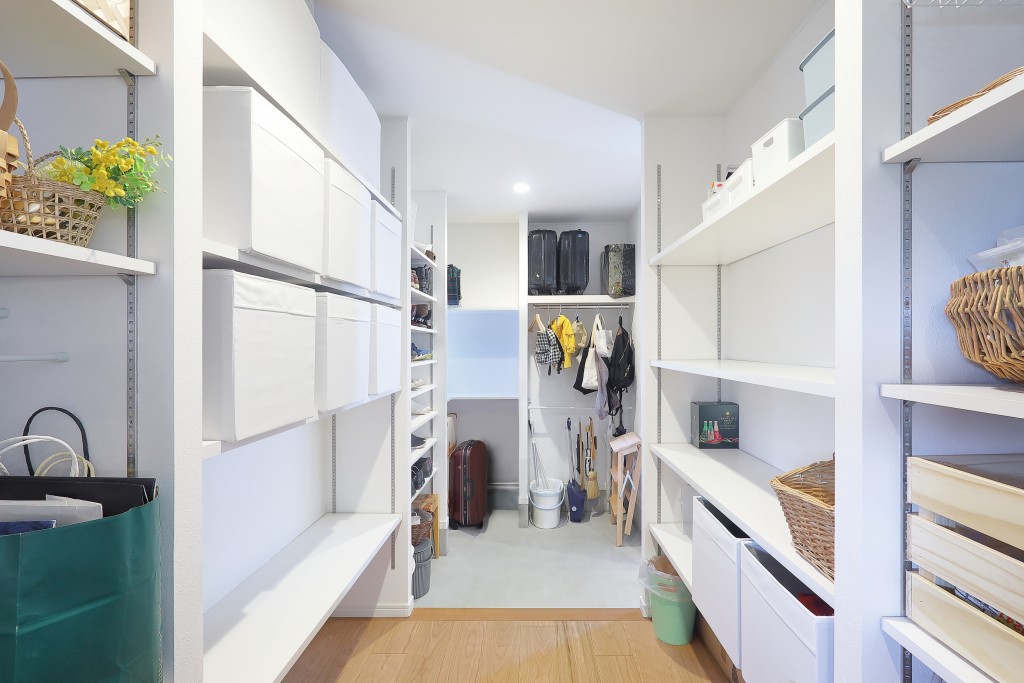 キッチンの東側はパントリー収納にして、更に進むとシューズインクロークへとつながる設計です。