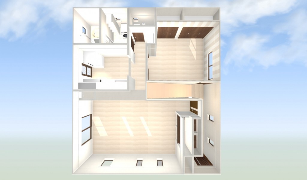 建物構造を現行の建築基準法に適合する強度に補強し、水廻り全交換・サッシ全交換・外壁サイディング貼り・屋根葺き替え・建具(ドア)全交換・内装全面リフォーム等の工事を行い、内部も外部もまるで新築のよう。