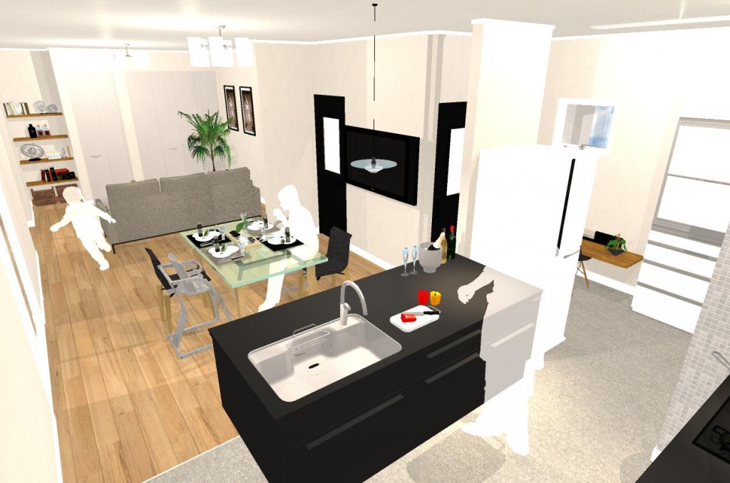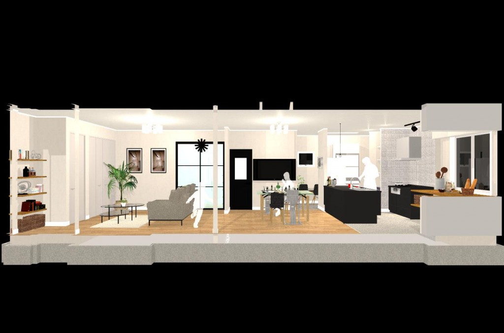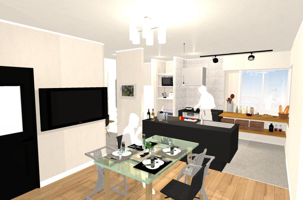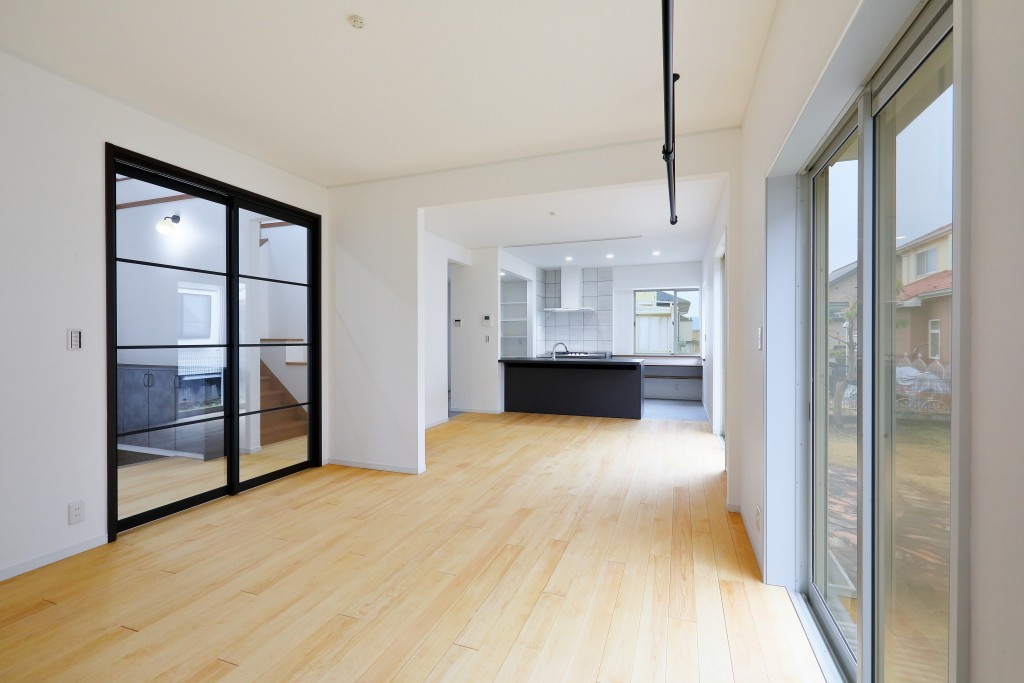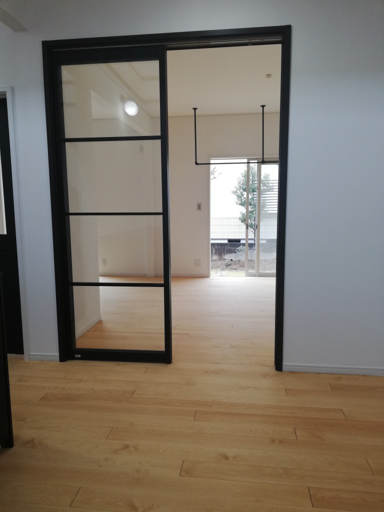 LDKに隣接する和室を洋室にして、リビングを拡張しました。お子様が走り回れる位に広いLDKが実現しました。