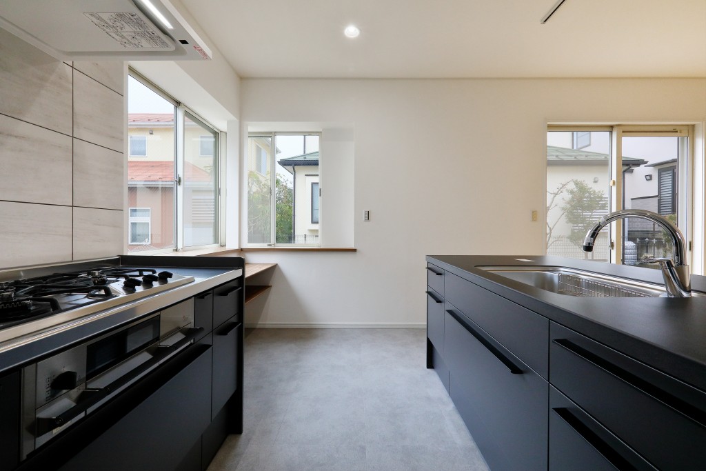 一番のお気に入りはリクシルのセラミックキッチン「リシェルSI」でした。しかもⅡ列配置のアイランドキッチンというこだわりです。ガスコンロも輸入品で、ショールームのような仕様になりました。