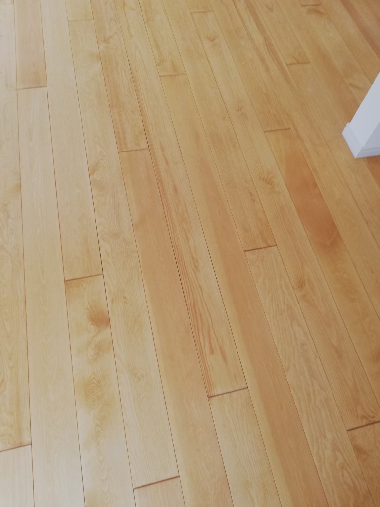 床材はお子様の健康に配慮し、無垢のパイン材をお選び頂きました。冬でも冷たさを感じない温かみのある自然素材です。また床材の塗装もドイツの「リボス」という自然塗料を使用しているので、万一お子様がなめてしまっても健康には害がありません。