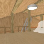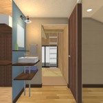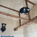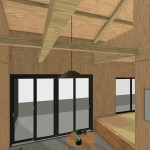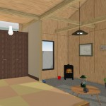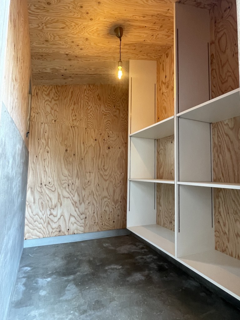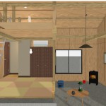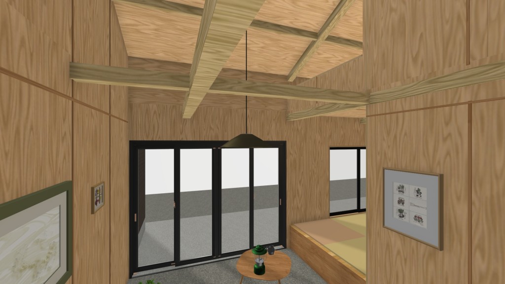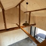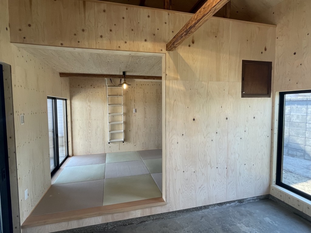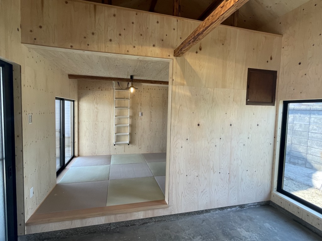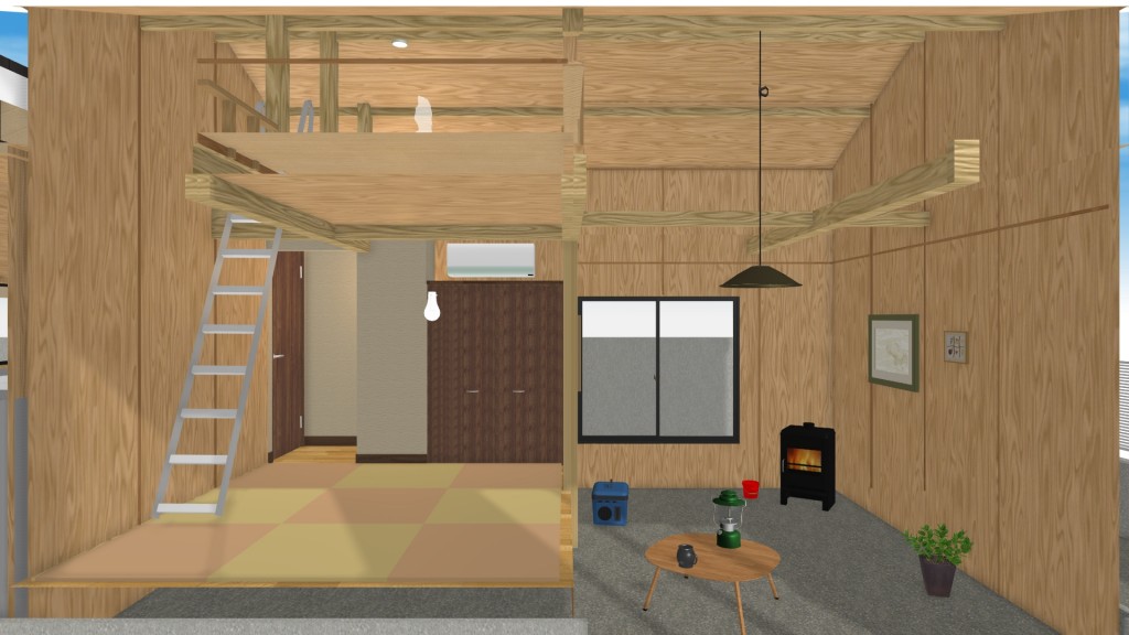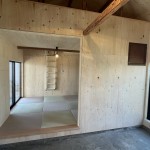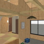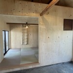梁や柱を見せ、ラーチ合板貼りの内装に!