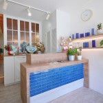 店名の『La belle mer(フランス語で「美しい海」)』をコンセプトに、海辺をイメージした内装。デザイン性はもちろん、お客様と従業員が快適に過ごせる動線にも配慮した間取り。