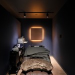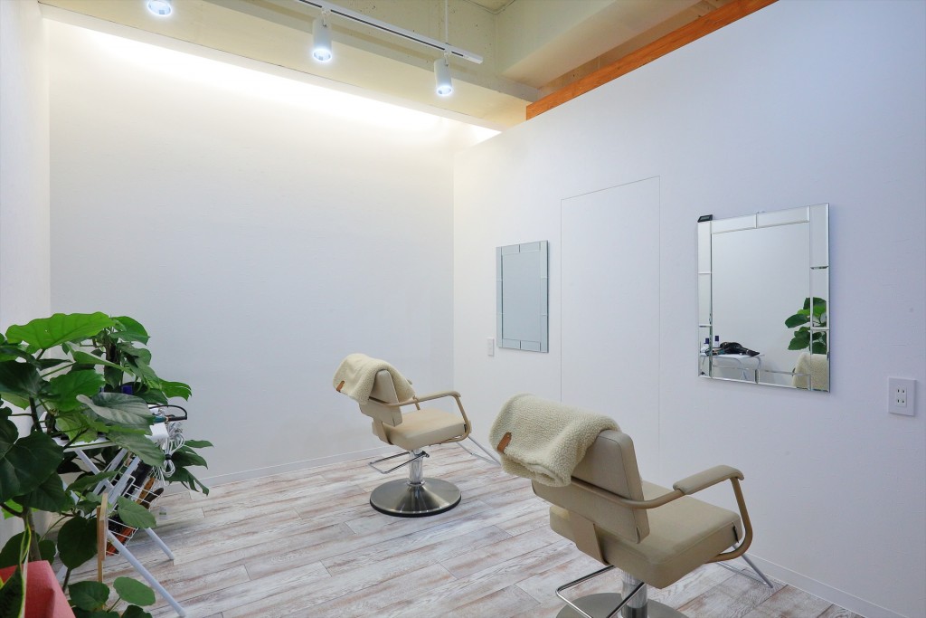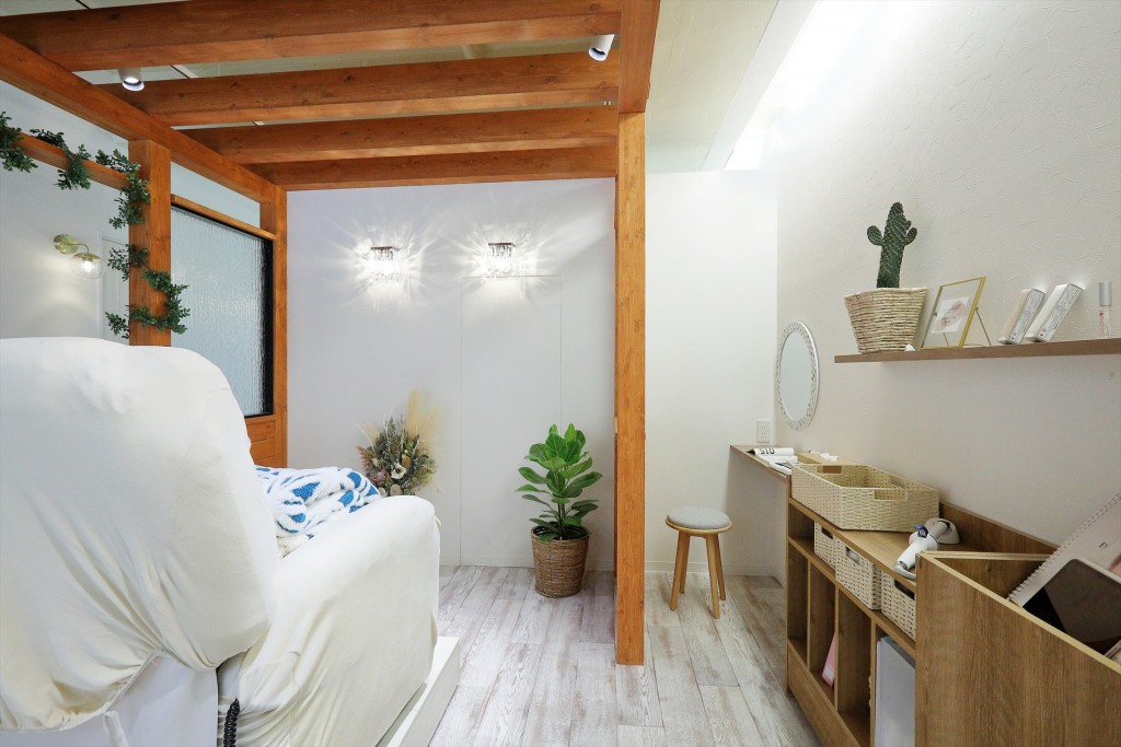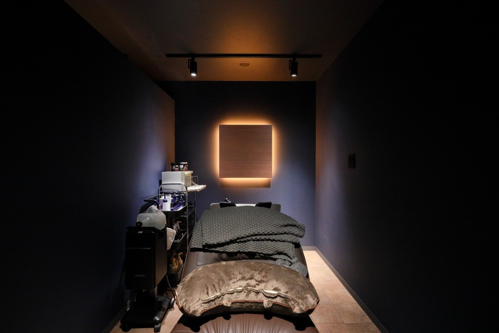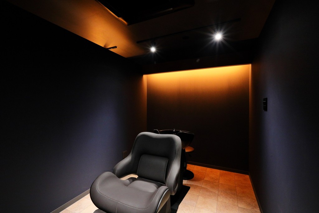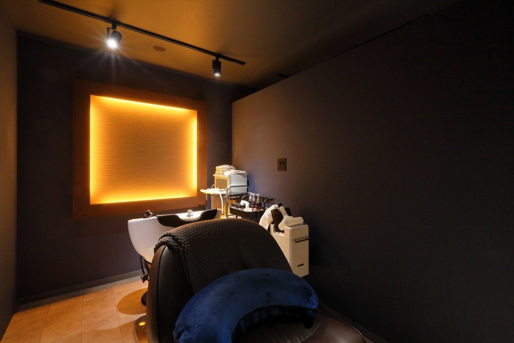 ヘッドスパエリアはお客様のプライバシーを守りつつ、ゆったりと過ごせるように配慮。間接照明は温かみのある光でリラックスできる空間を演出しています。