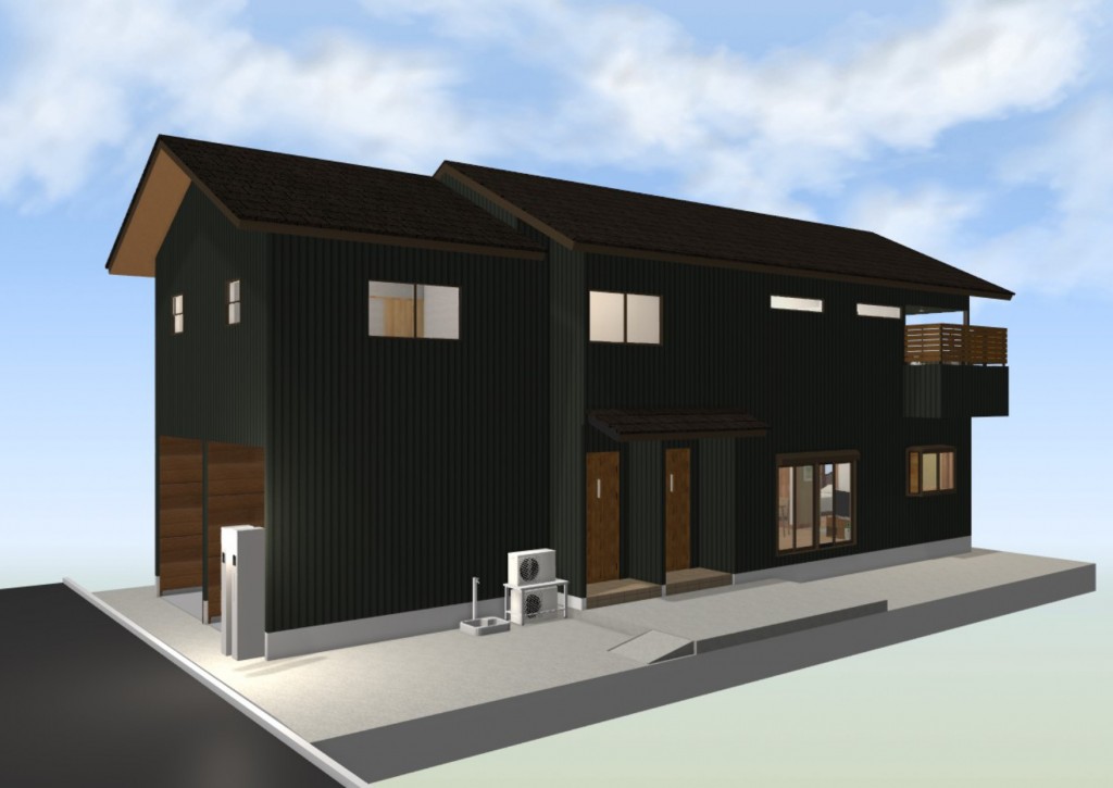 玄関を2ヵ所に配置した完全分離型二世帯住宅