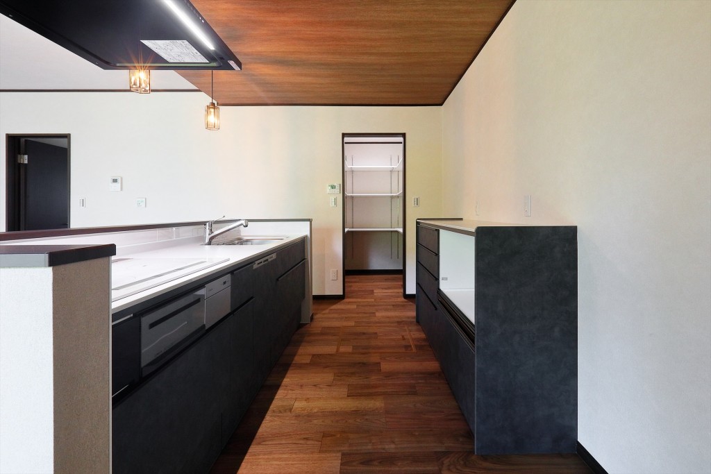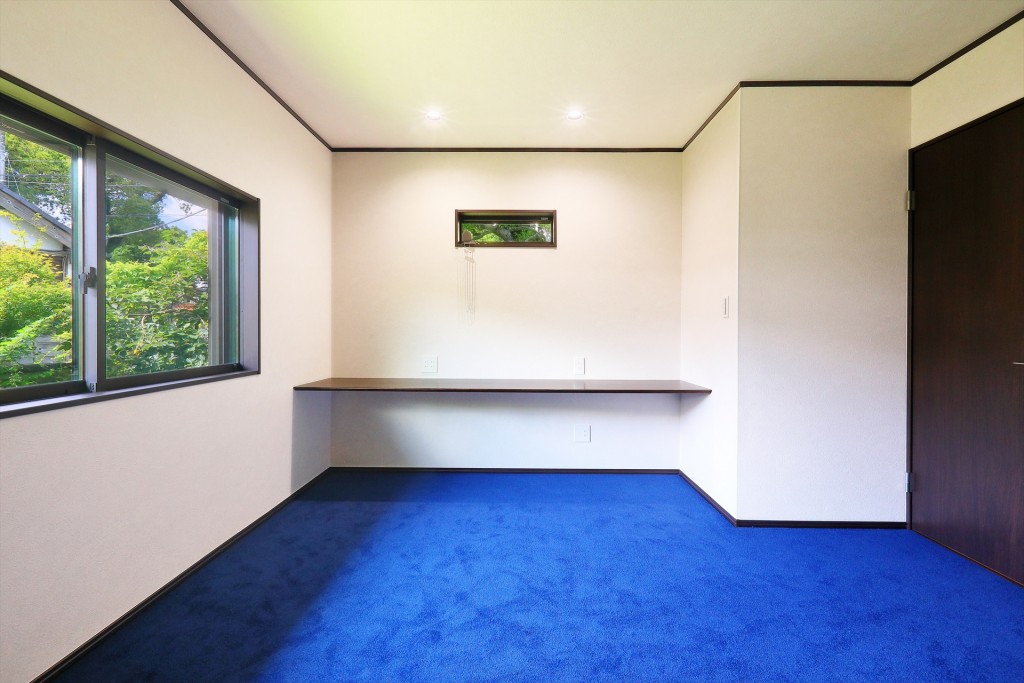 リモートワークの多いM様ご希望でワークスペースを新設。内装はオフィスのイメージで、居住スペースとは異なる雰囲気に。仕事とプライベートの切り替えを配慮しました。