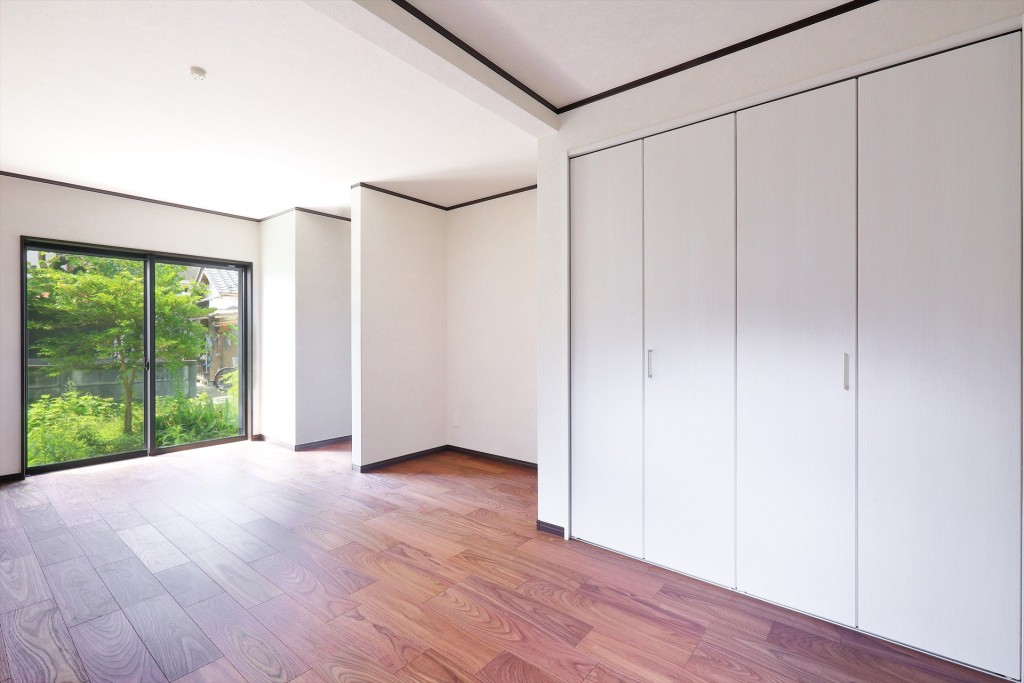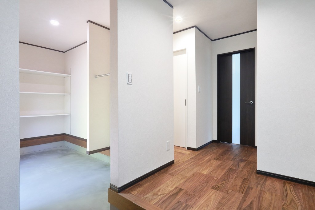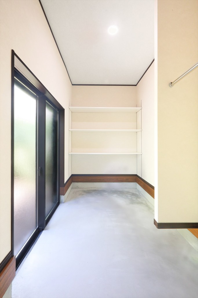 アウトドア用品を収納するために玄関の隣には広い土間収納スペースを新設しました。掃き出し窓から自転車も入れられる使い勝手の良い空間です。