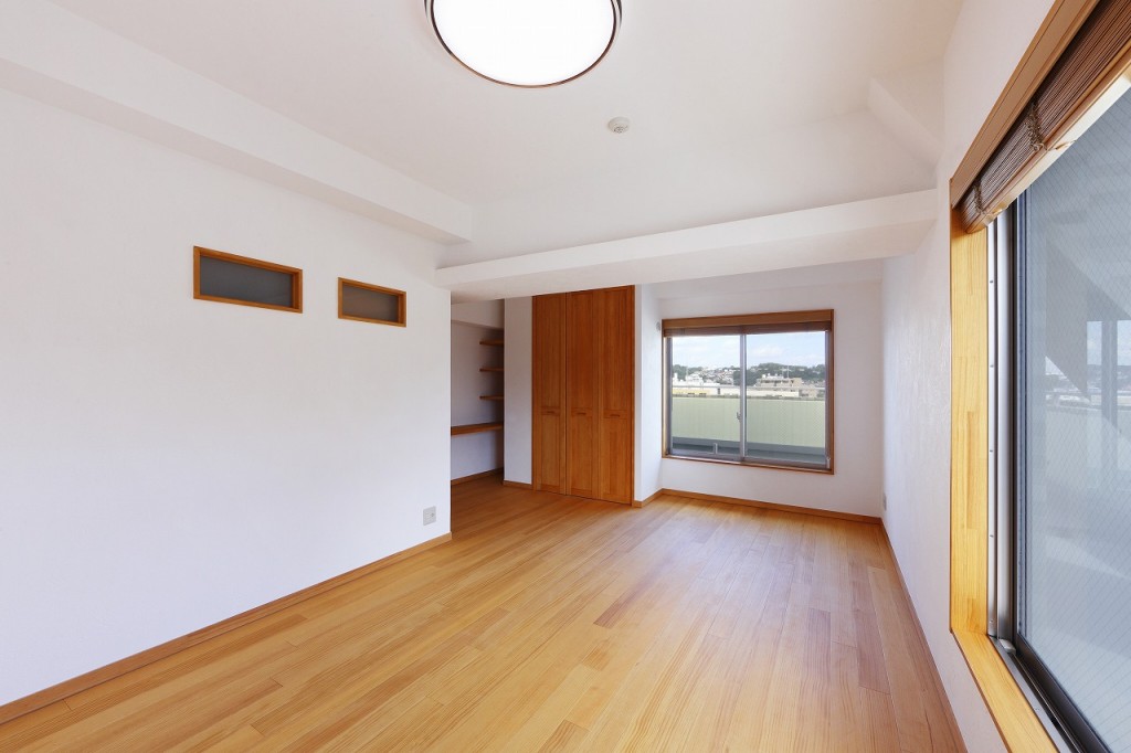 LDK・洋室ともに、内装は自然素材を採用。床は無垢のパイン材、壁と天井にはスイス漆喰を塗って仕上げています。デザイン性も機能性も高い居心地のよい空間になりました。