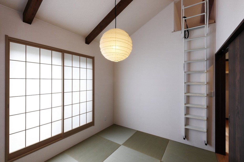 勾配天井で広がりを感じる和モダンな和室