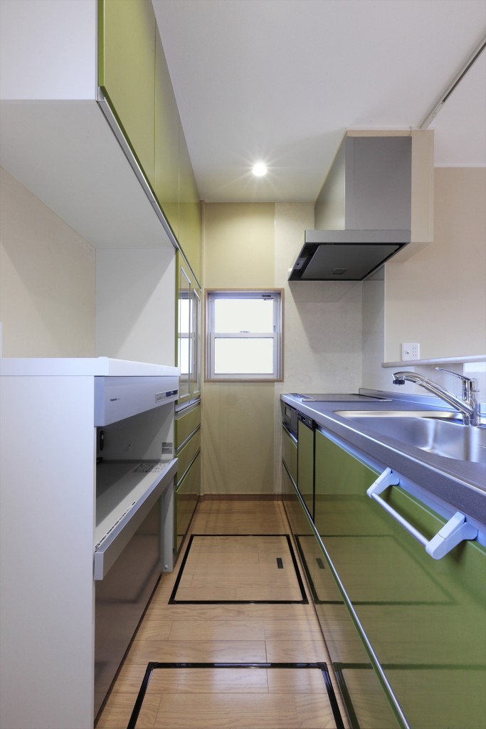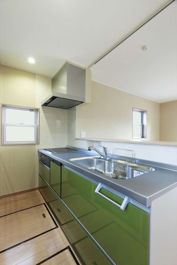 T様が大好きなグリーンがキッチンのアクセントになっています。