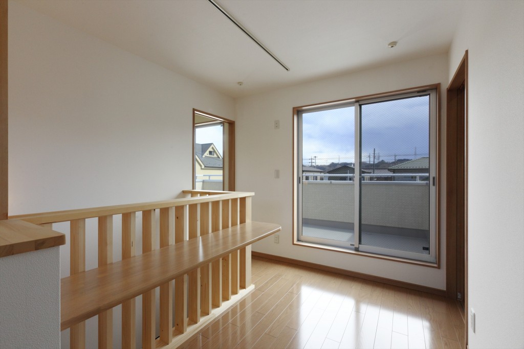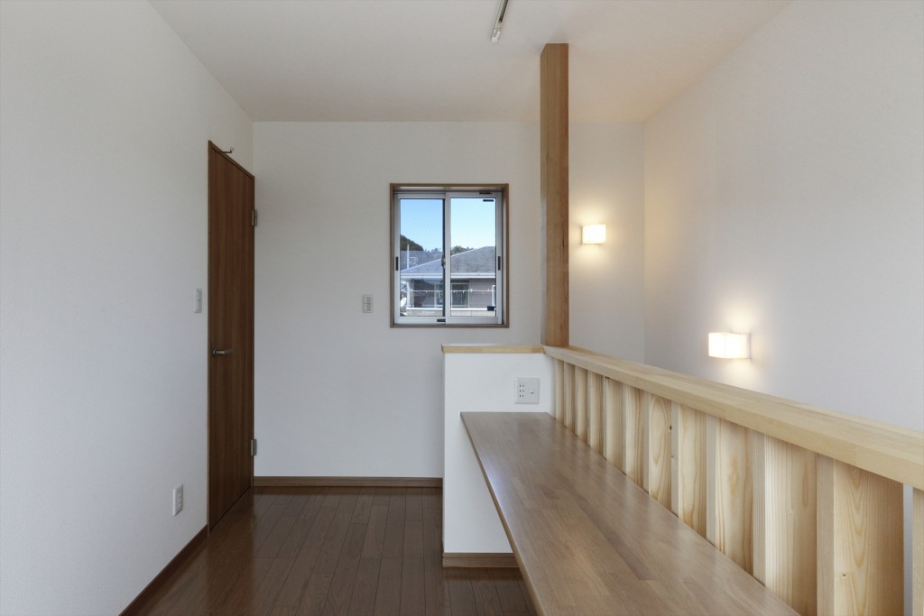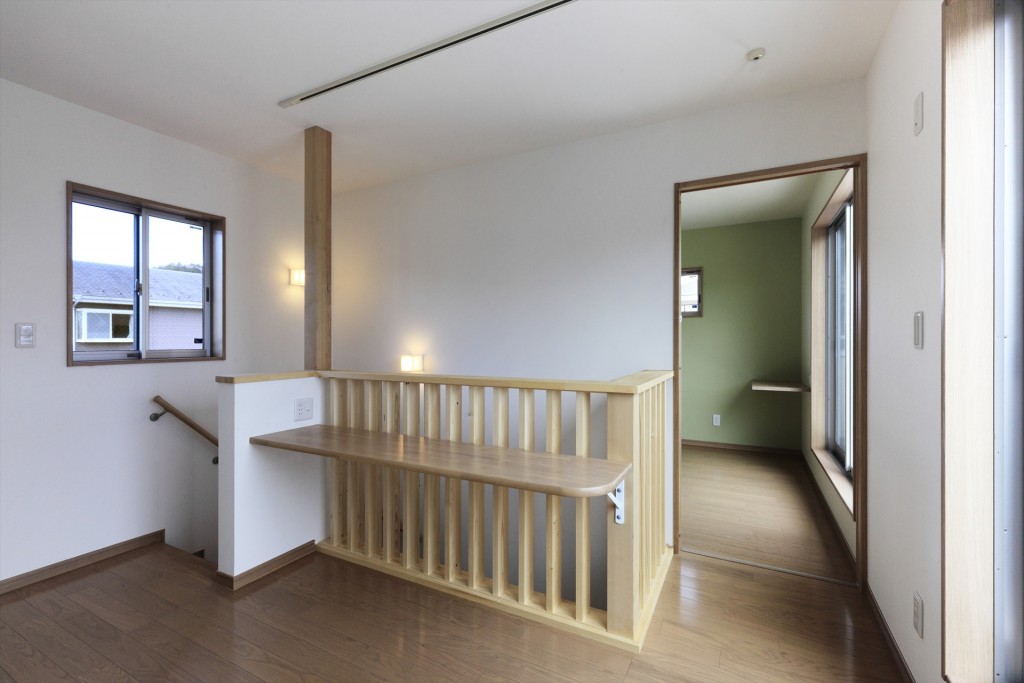2階ホールの手摺に取り付けたカウンターは、パソコン作業や読書をしたり、書き物をしたりと多目的に使えます。