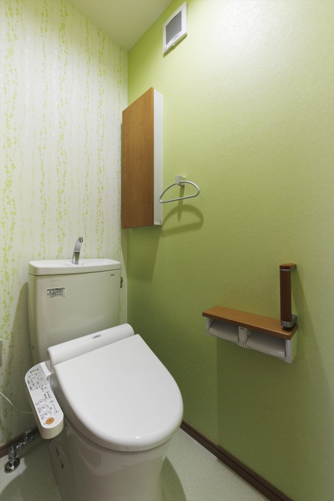 トイレ<TOTO>ピュアレストQR デザインクロスを使って可愛いナチュラルな空間に仕上げました。